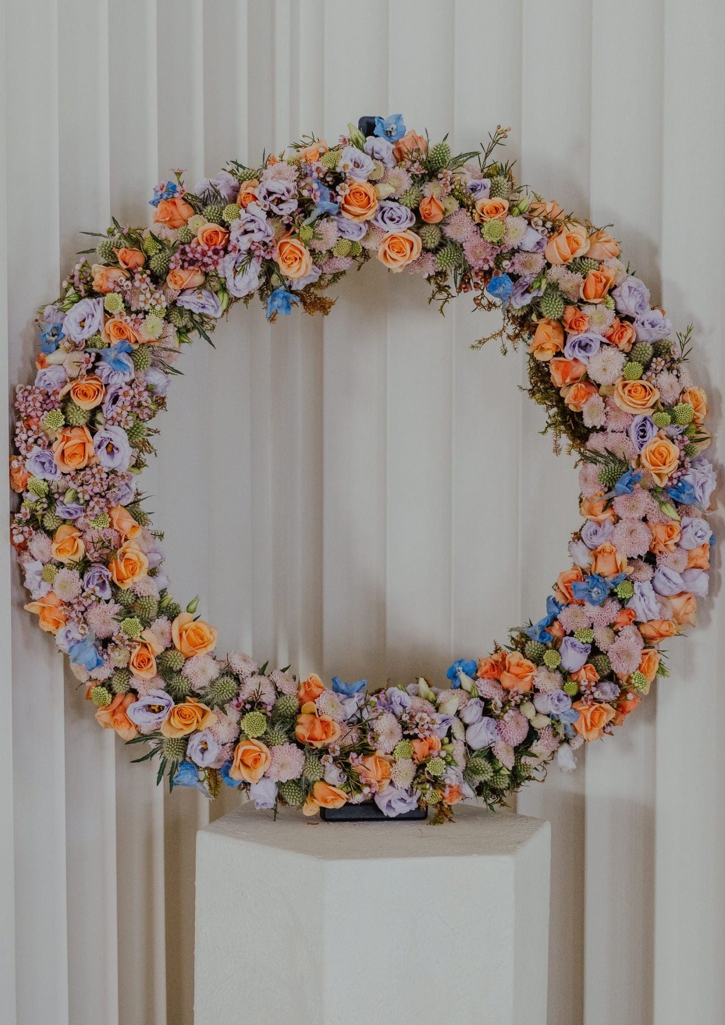 Prices vary upon request. The image shown here is a 24" round wreath frame at a $300.00 price point.