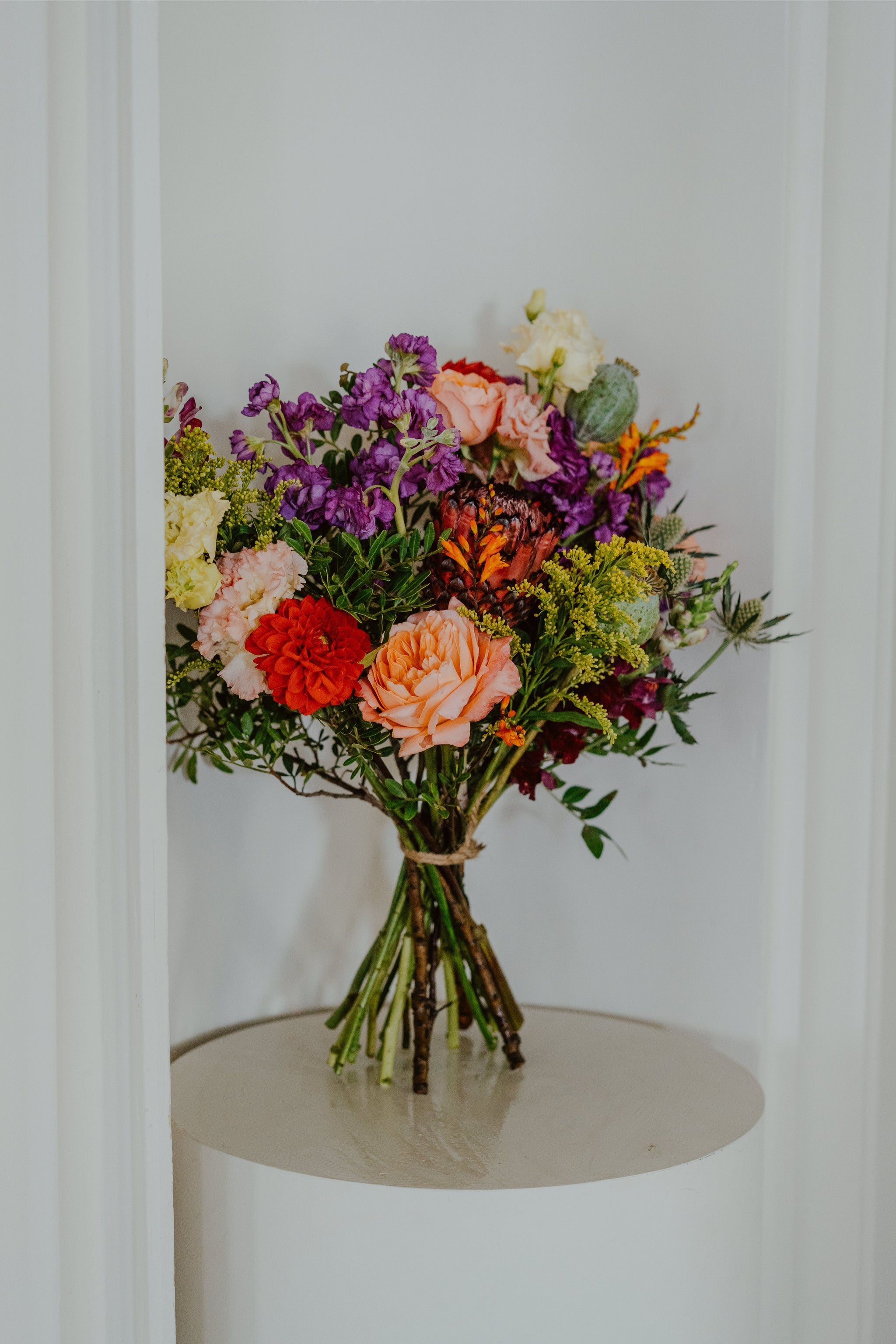 Note: Each floral arrangement we make is unique and designed with fresh, seasonal blooms and greenery. Therefore, the image you see is a representation of the style and size of the arrangement you order. Our flowers change from day to day and from season to season. For instance, in the autumn months, you can expect to see dahlias, while in the spring you will likely see peonies. Please check out our Instagram feed to see what flowers we’re designing with this week.