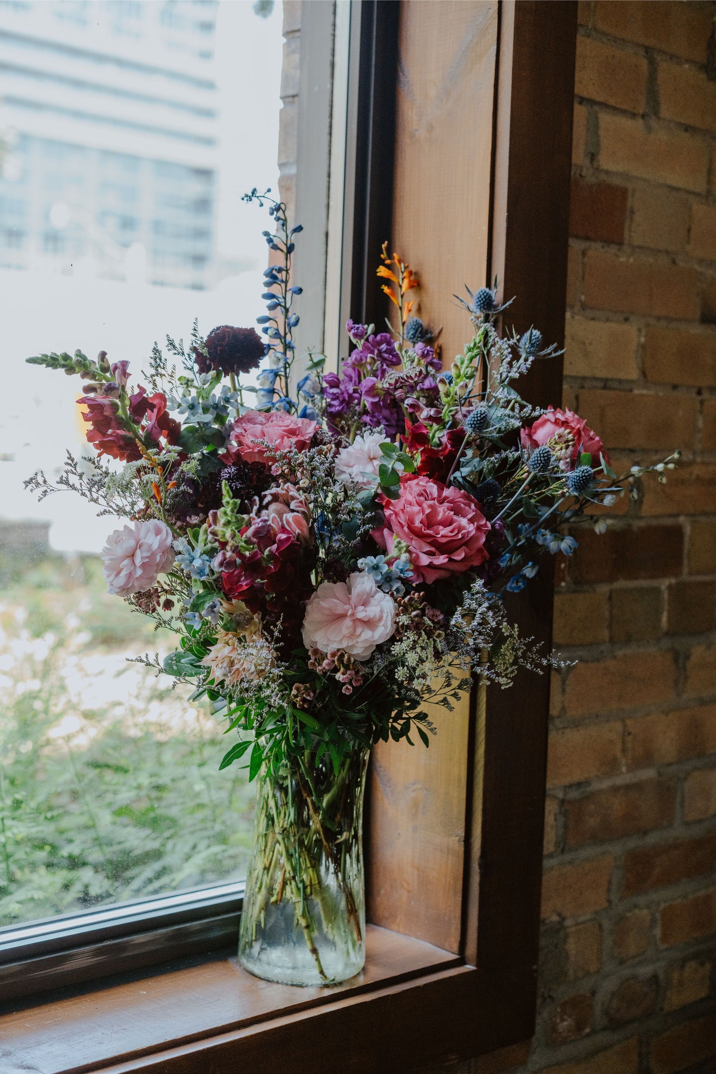 Note: Each floral arrangement we make is unique and designed with fresh, seasonal blooms and greenery. Therefore, the image you see is a representation of the style and size of the arrangement you order. Our flowers change from day to day and from season to season. For instance, in the autumn months, you can expect to see dahlias, while in the spring you will likely see peonies. Please check out our Instagram feed to see what flowers we’re designing with this week.